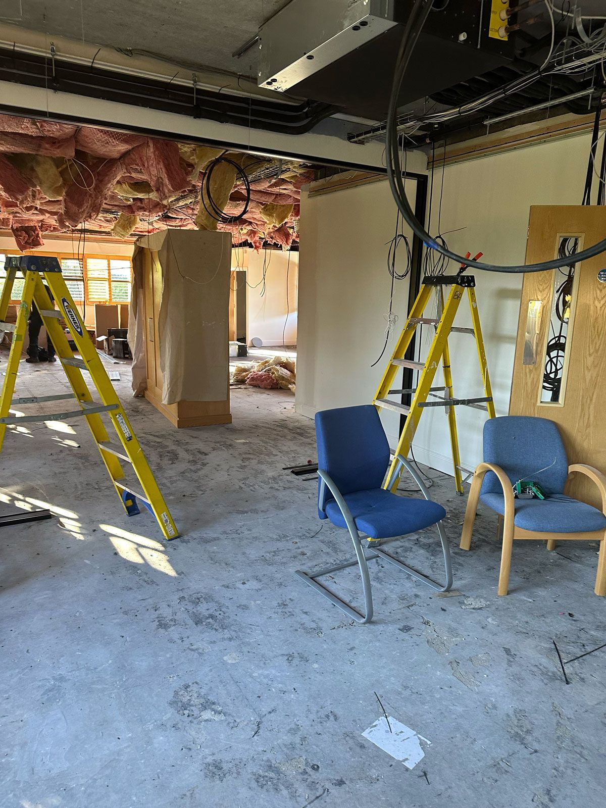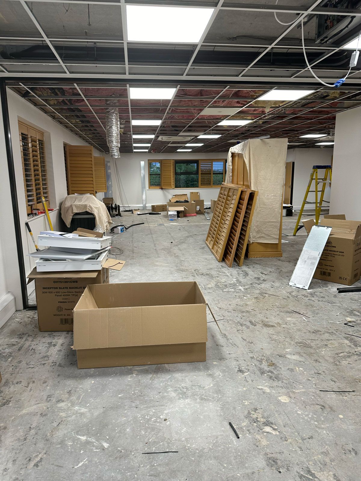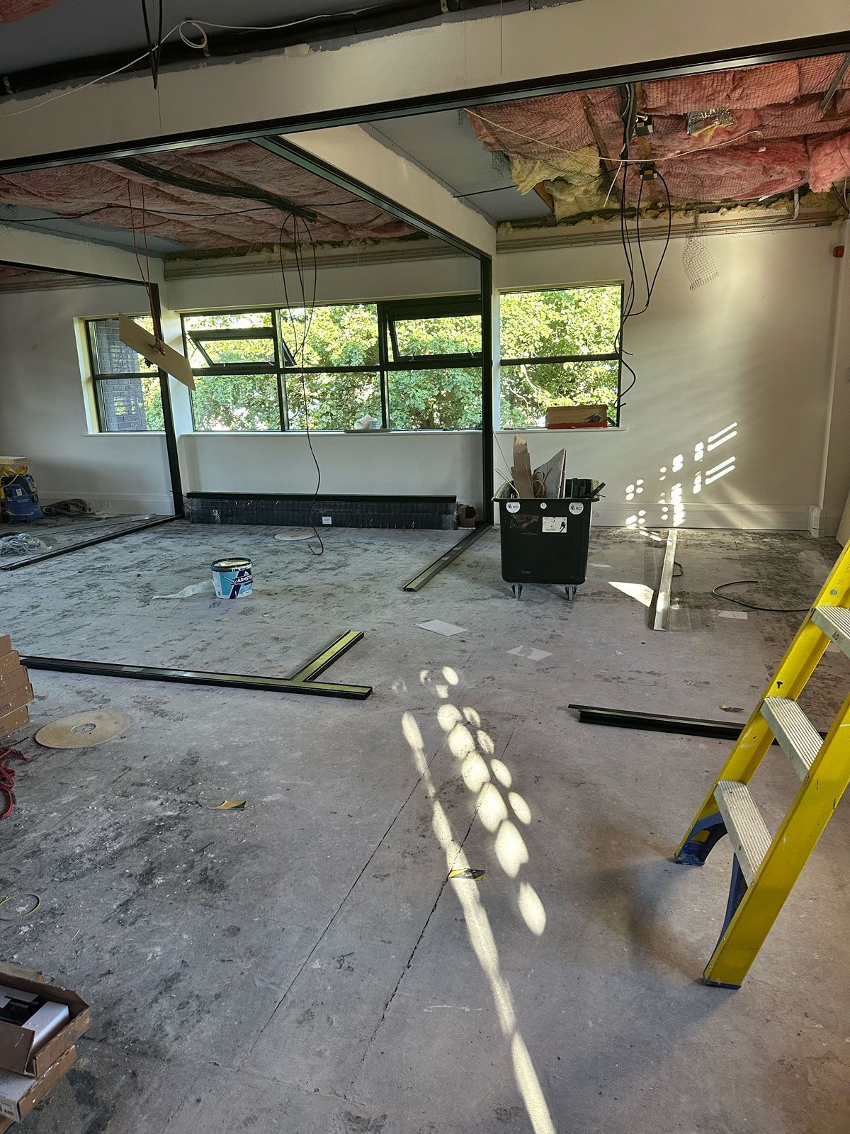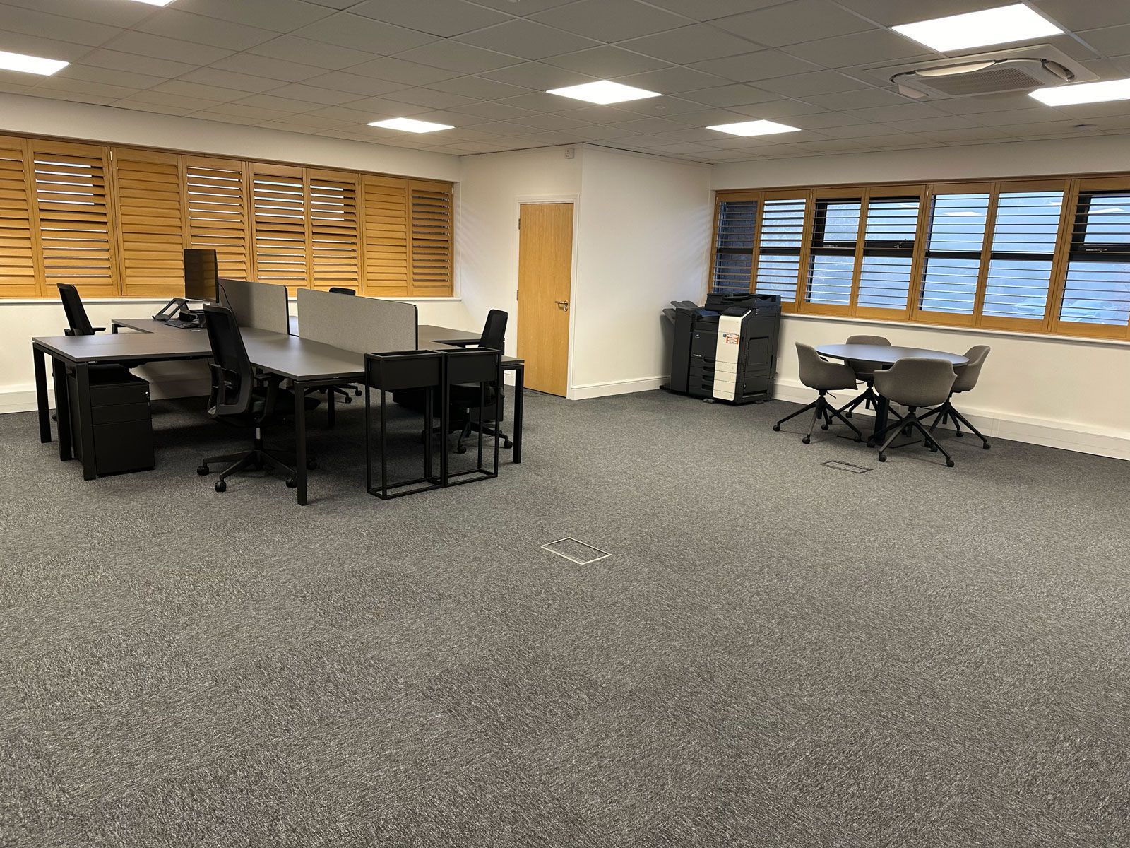 We commenced by removing the building's original fixtures, fittings, ceilings, flooring, and air conditioning units. Once we had stripped it back to the bare walls, we installed a new air conditioning system and added glass partitions to form three offices and a reception area. After completing the electrical installations and door entry points, we fitted a new suspended ceiling and upgraded to LED lighting throughout. We then progressed to decorating, installing flooring, and adding the glass partitions, as well as the new kitchen and kitchenettes.